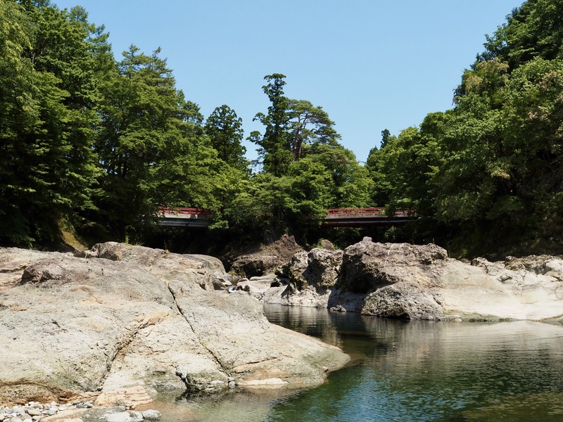 和賀川の景観に彩りを添える小島。樹木が美しく配置され、岩肌と見事なコントラストを描き箱庭のような美しさ。紅葉の季節は圧巻で、付近はイワナの宝庫としても知られています。