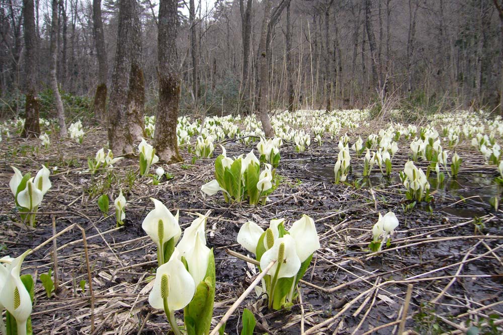 蛭山(ひるやま)ミズバショウ群生地は、林に囲まれた3ヘクタールを超える広大な群落で、湿地帯を周回する散策路があり、ミズバショウの群生を間近で観賞しながら、散策をお楽しみいただけます。
