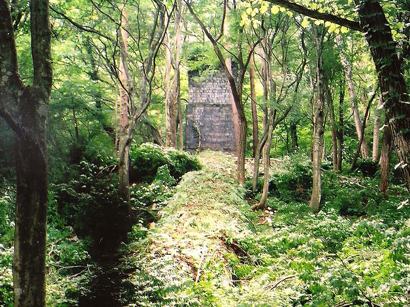 街道筋で最大の見せ場である、鷲之巣金山跡には、人がやっと通れるほどの坑道「たぬき堀」跡が、蜂の巣状に残っています。平泉藤原氏時代、街道沿いには、鷲之巣(風倉山秀衡掘)や安久登沢(金売吉次の隠し金山)、草井沢、大石沢、大荒沢などの金山があったと伝えられています。