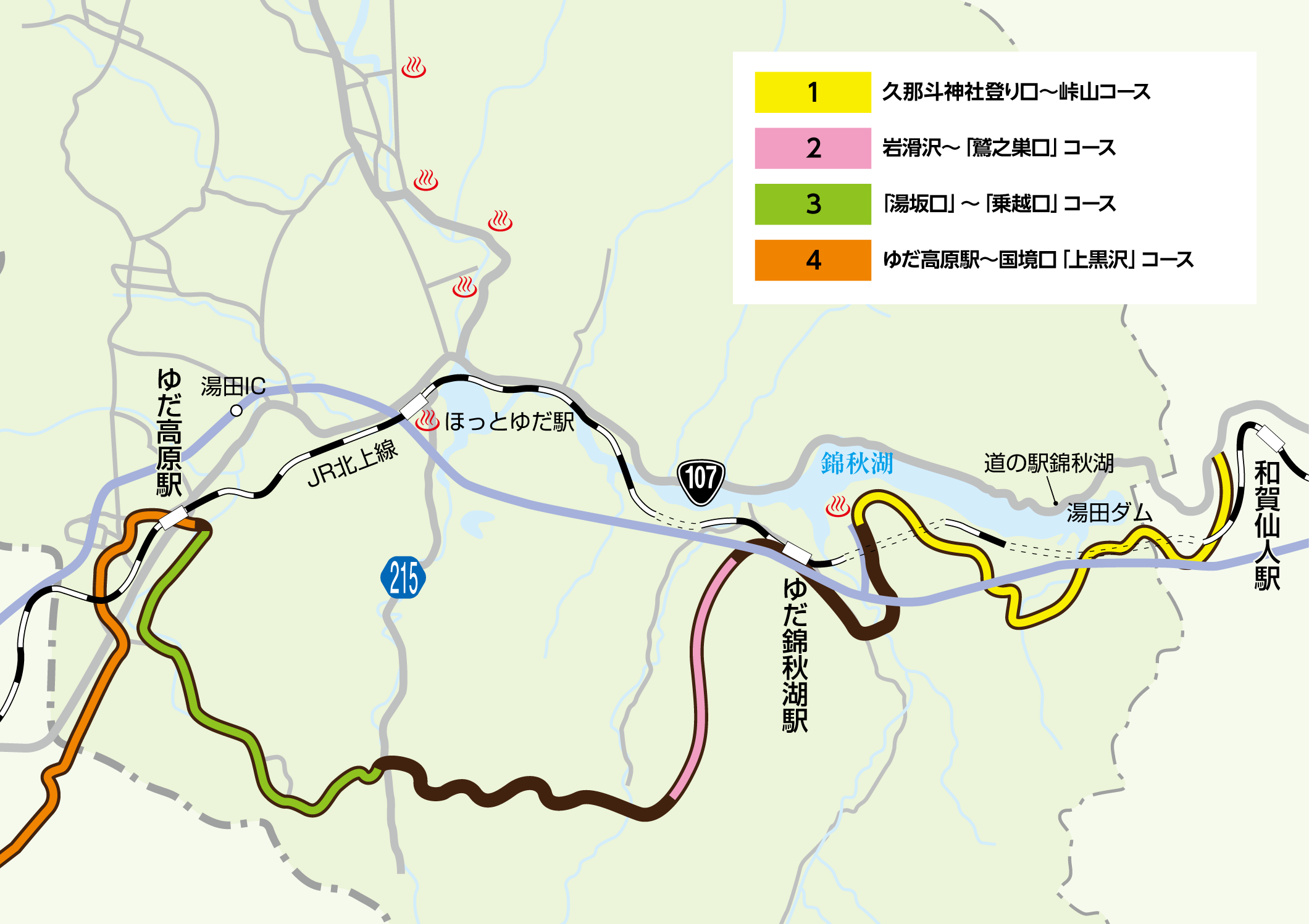4ゆだ高原駅〜国境口「上黒沢」コースYudakougen station - Kokkyouguchi "kamikurosawa" course