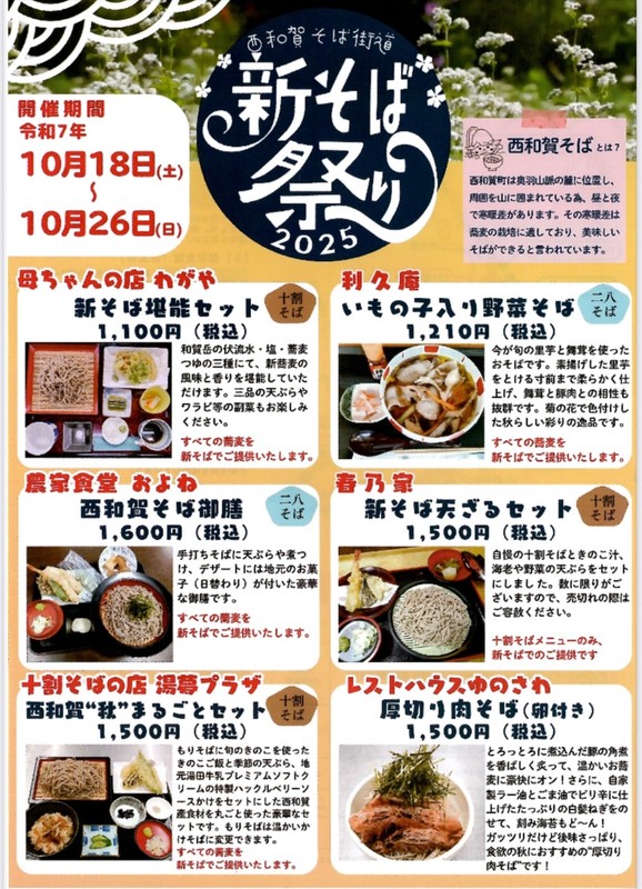 ぜひ、西和賀の風味豊かなそばと秋の味覚をご賞味下さい。
