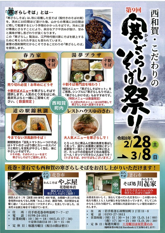 - 西和賀町そば祭り実行委員会事務局(西和賀産業公社内/平日8:30~17:30)